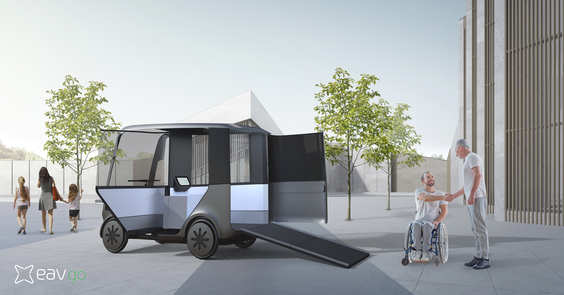 Adam Barmby, Founder and CEO of EAV, said: “It was critical for us to be able to offer everyone the ability to access and use an EAVGo! as a passenger. This enabled us to design a unique vehicle where the rear bulkhead can fold down into a ramp for easy wheelchair access.”