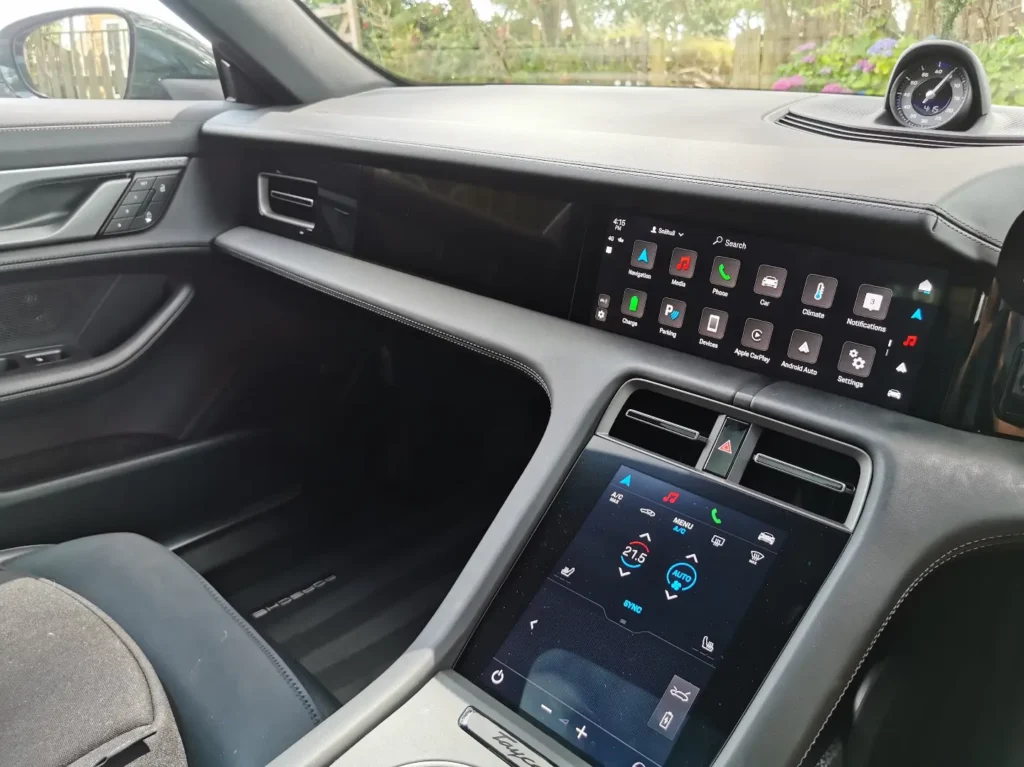 The car was delivered to me on Thursday afternoon and as the driver reversed his trailer down our drive, my first impression was “it’s wide!”. I’ll happily admit that the dimensions of the car, its value (this particular car is advertised online as an ex-demonstrator for £115,000), and the narrow Cornish roads around our town had my nerves jangling! However, once I had spent five minutes checking out the controls (all pretty familiar stuff if you are used to Volkswagen Group products), I felt a bit calmer. As I set off to collect my son from school, the nerves disappeared completely; the Taycan is as easy and relaxing to drive at low speeds as any other EV I have driven, and I felt immediately at home.