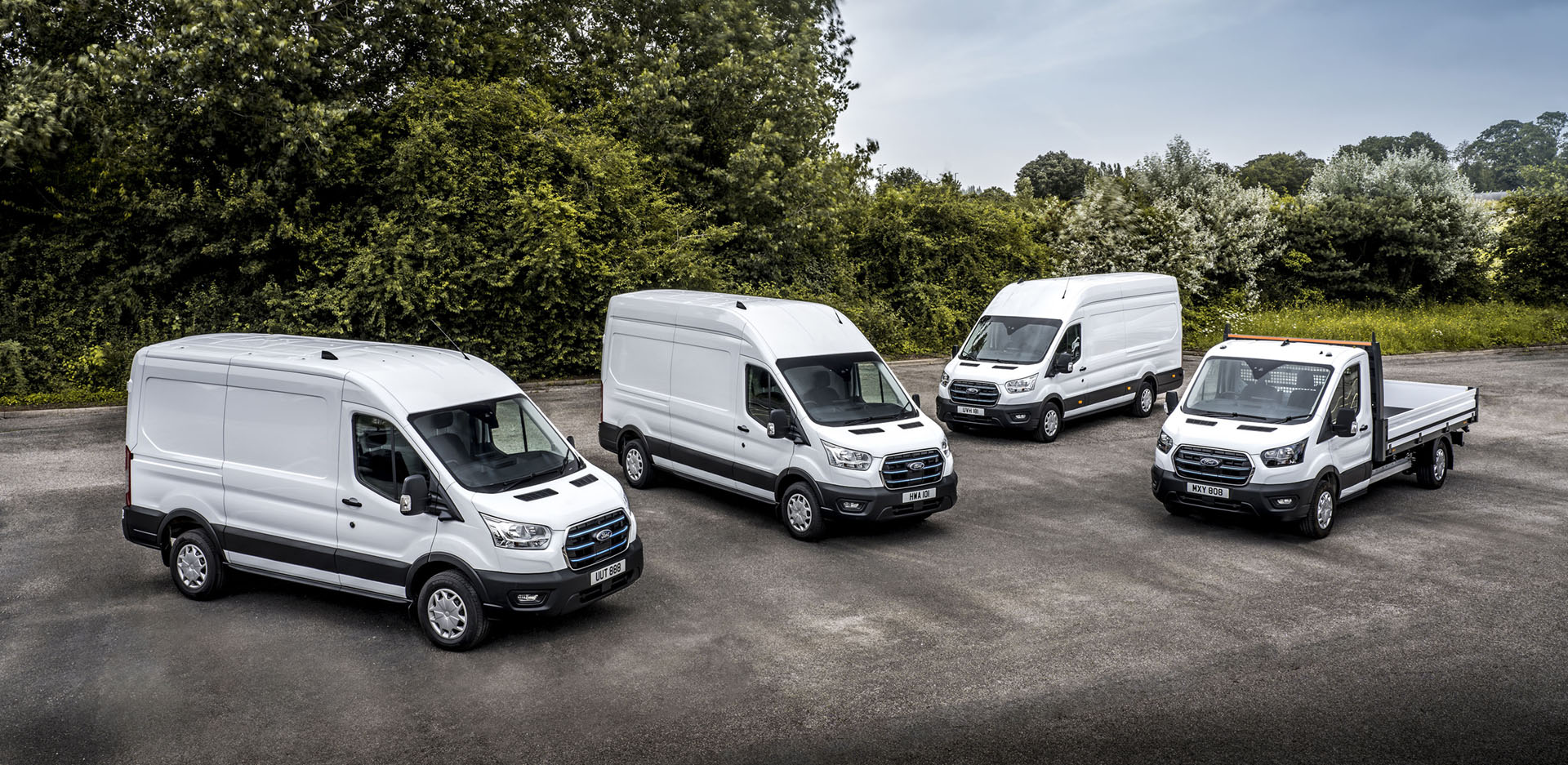 The fleet of trial electric vehicles (EVs) features a full range of E-Transit variants including van, double-cab-in-van and chassis cab derivatives with gross vehicle masses from 3.5 to 4.25 tonnes.