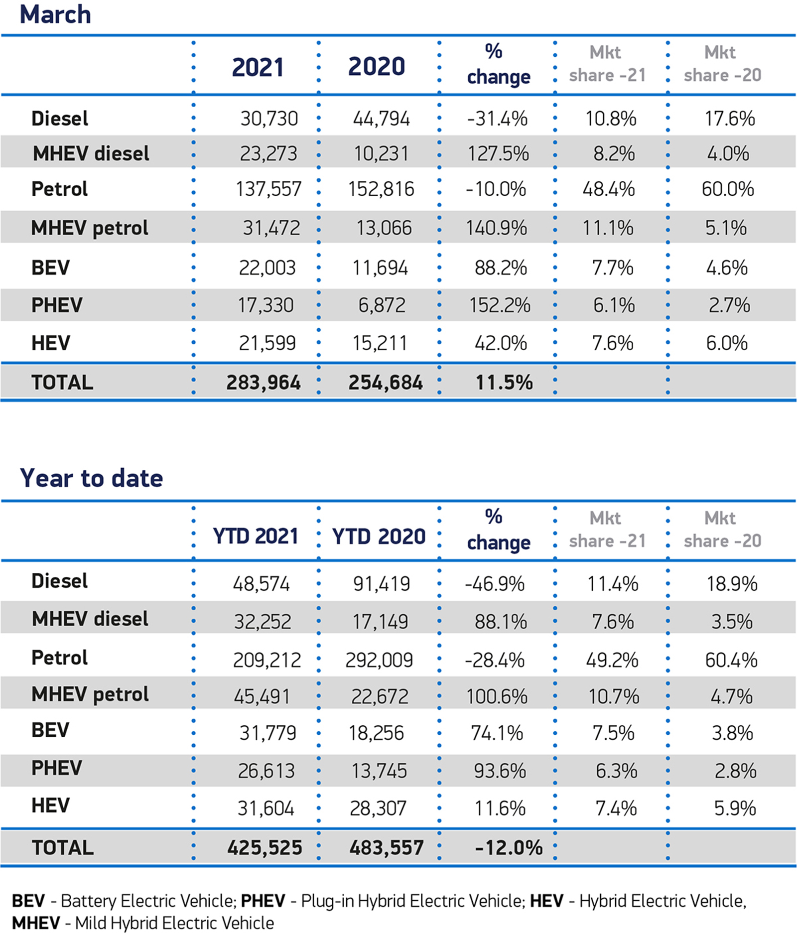 Registrations of BEVs during March 2021 increased by 88.2 percent to 22,003 units, while PHEVs rose by 152.2 to 17,330. Hybrid electric vehicles (HEVs) also rose 42.0 percent to reach 21,599 registrations. These are incredible figures and shows that lockdown has helped to change customers’ perspective on driving low and zero-emission cars and vehicles.