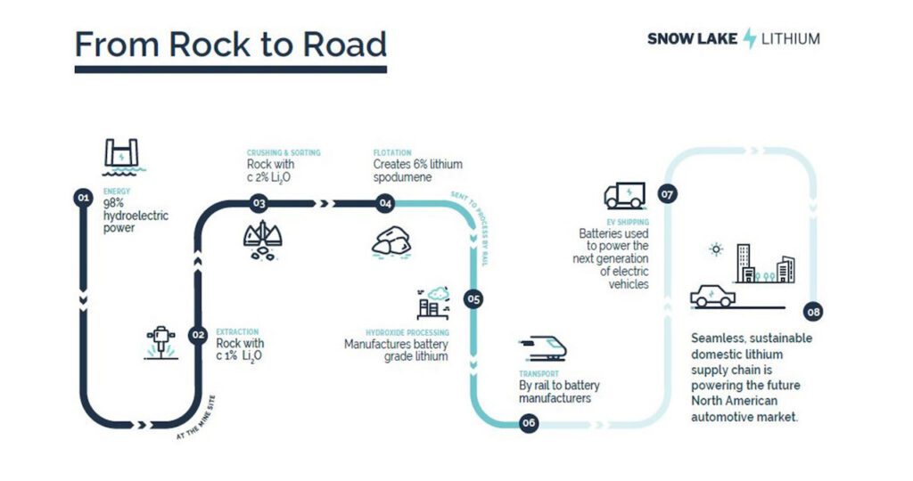 To enable the seamless integration of the supply chain, Snow Lake Lithium plans to establish a joint venture to create a lithium hydroxide processing plant and is seeking a partnership with an automotive OEM or a battery manufacturer to deliver this.